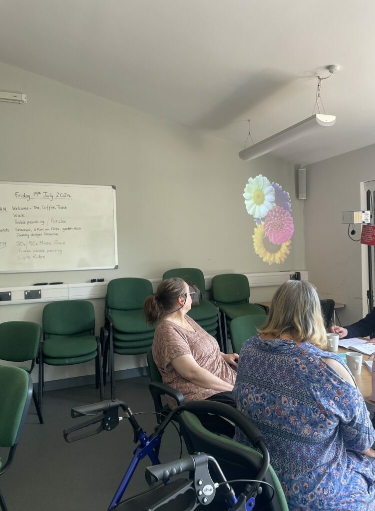 Elsie explained how they use the projector in group environments and in 1-to-1 sessions, and they often project it onto a wall, meaning groups of up to 10 can sit around and engage with the activity.